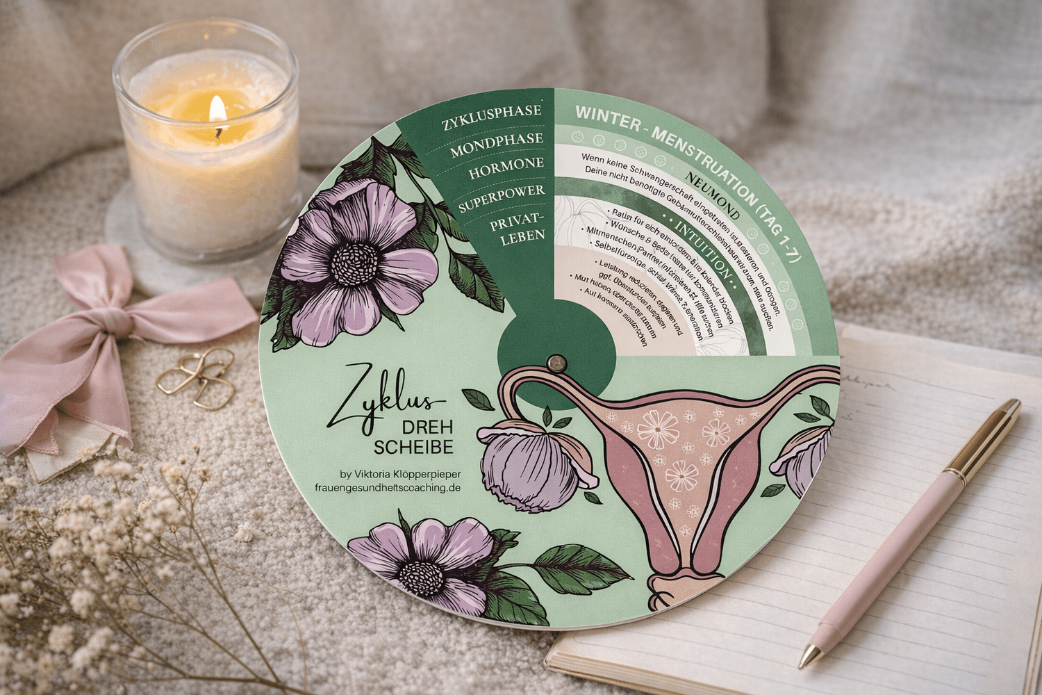 Ich sehe in meiner Praxis täglich, wie viele Frauen gegen ihren Zyklus kämpfen. Sie funktionieren. Sie zweifeln. Sie fühlen sich „falsch“. Und wissen oft gar nicht, warum sie sich in jeder Phase so unterschiedlich erleben. Genau deshalb habe ich die Zyklus-Drehscheibe entwickelt. Ein liebevoll gestalteter, hochwertig gedruckter Begleiter für zu Hause.
